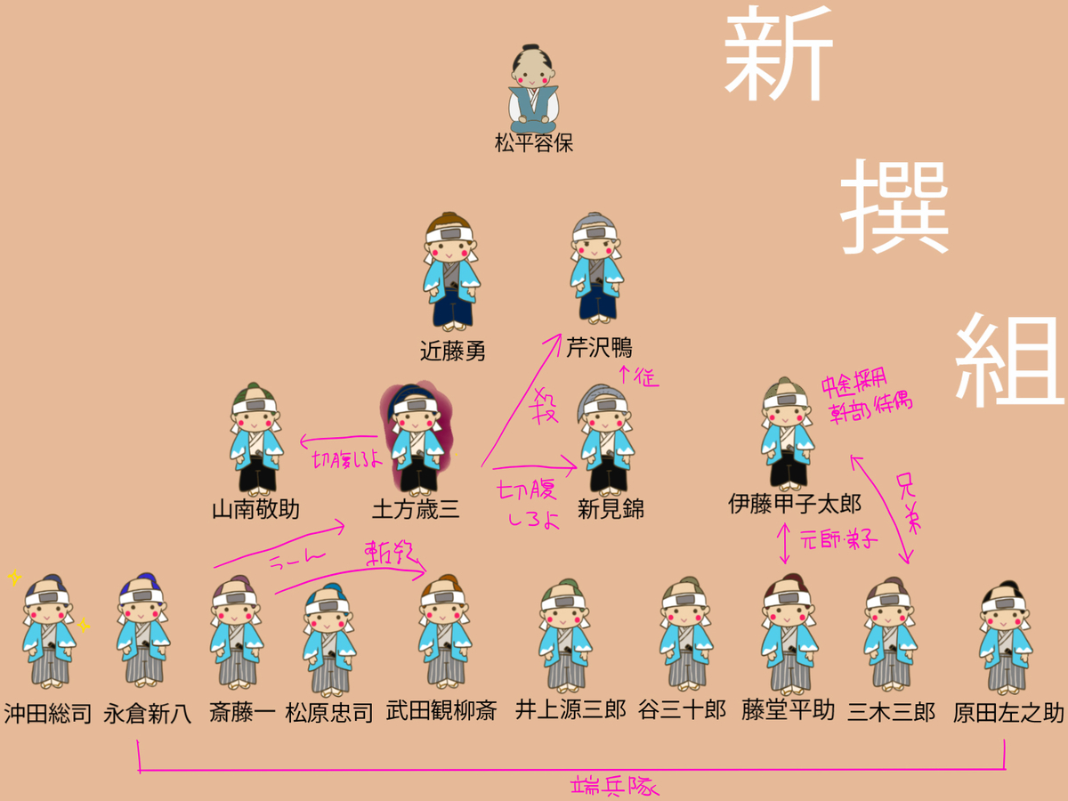 芹沢の部下で初期のスリートップの一人。近藤・土方らに無理やり切腹させられる。